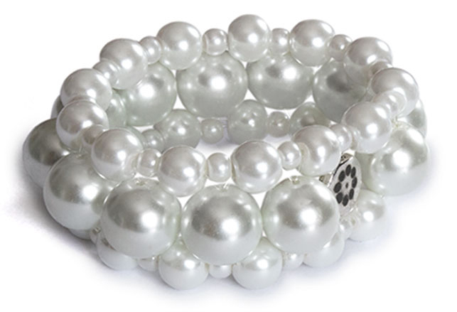 Korussa on klassisia valkoisia helmiäislasihelmiä.